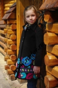 Элегантное черное пальто для девочки, украшенное яркой вышивкой. Оптовая продажа.