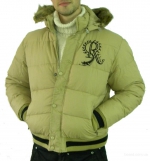 Короткий мужской пуховик травяного оттенка с вязанными манжетами, по оптовой цене.