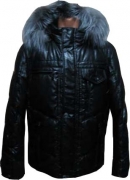 Черный удлиненный мужской пуховик прямого кроя с натуральным мехом, продажа оптом.