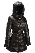 Удлиненный женский зимний пуховик с большим дутым капюшоном, планкой с большими пуговицами, дополнен ремнем в цвет изделия. Продажа оптом.
