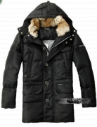 Удлиненный мужской пуховик черного цвета с капюшоном и воротником из кроличьего меха. Продажа оптом.