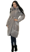 Желтый длинный женский пуховик-пальто с ремнем на металлической пряжке с капюшоном. Продажа оптом.