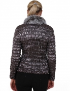 Короткая женская куртка из сжатой ткани с натуральным мехом, цвета металлик. Продажи оптом.